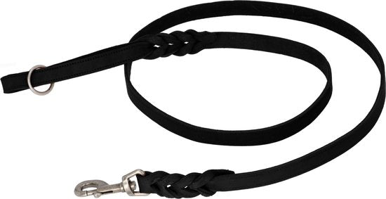Adori Looplijn Vetleer Met Vlecht Zwart - Hondenriem - 160x1.8 cm